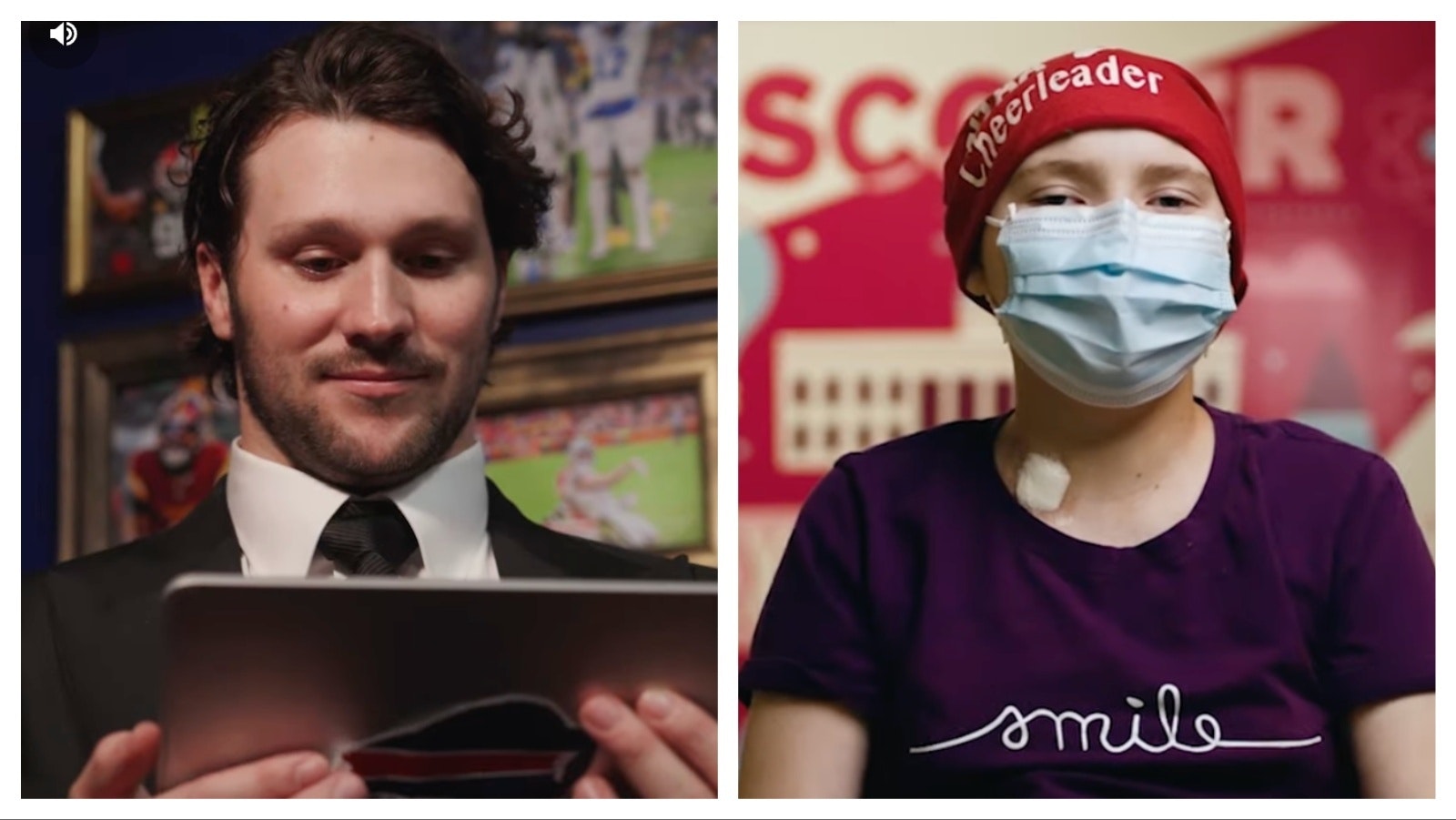 Josh Allen reacts to Buffalo Children's Hospital MVP video